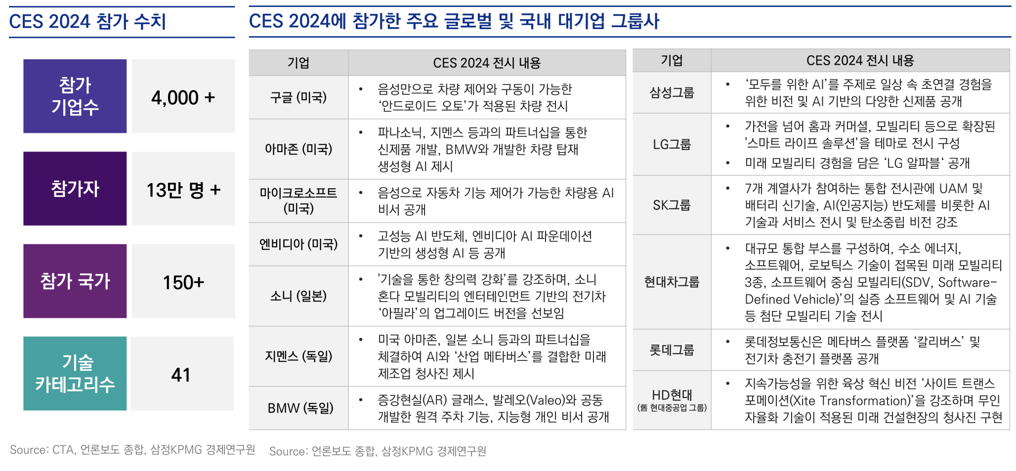 본 글은 삼정 KPMG에서 발간한 CES 관련 보고서를 참고 (보고서 링크)하였고, CES 국내기업 참여 관련 기사를 함께 인용하여 작성한 내용입니다.