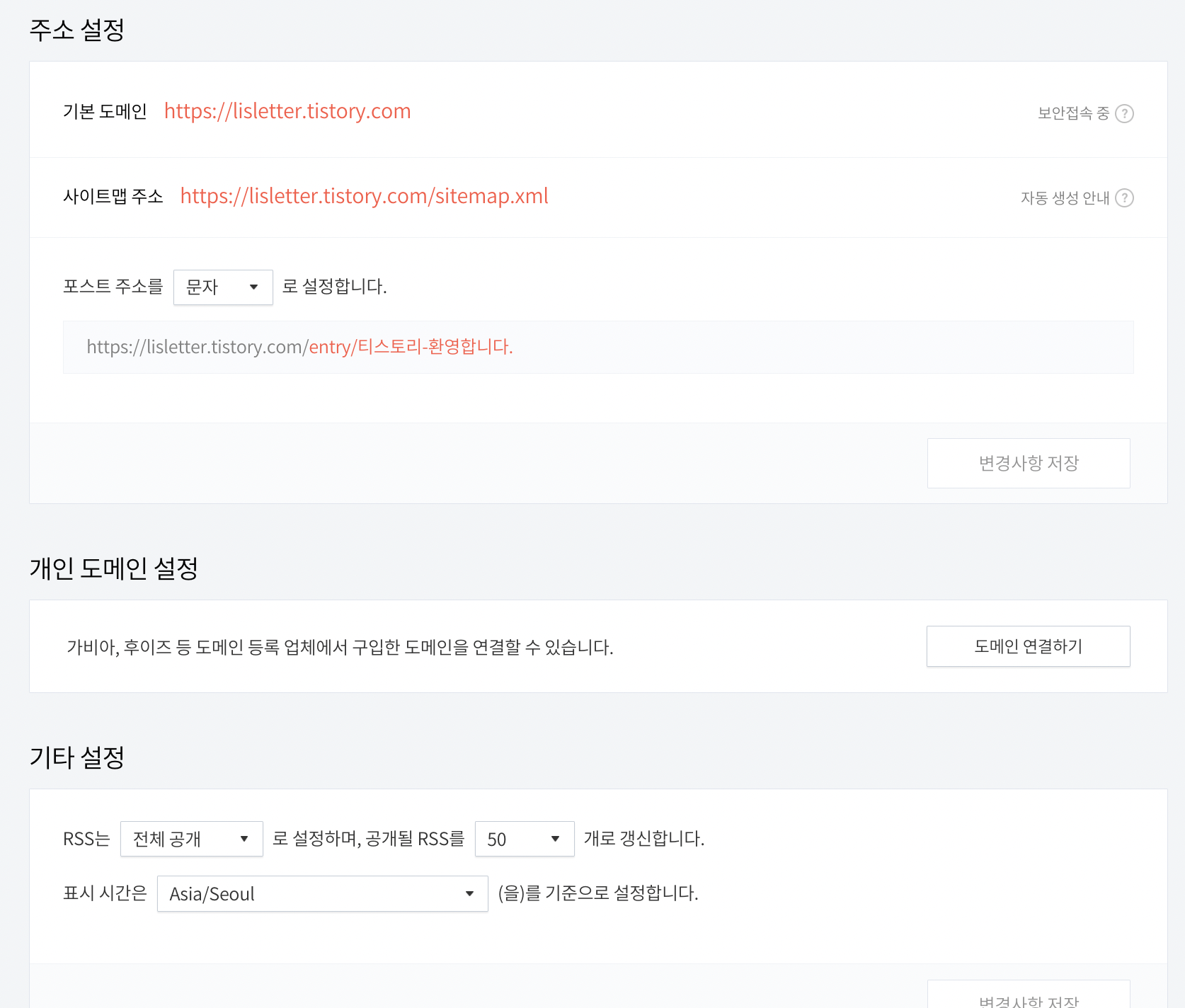 7. 관리 - 블로그 주소 설정, 기타 설정