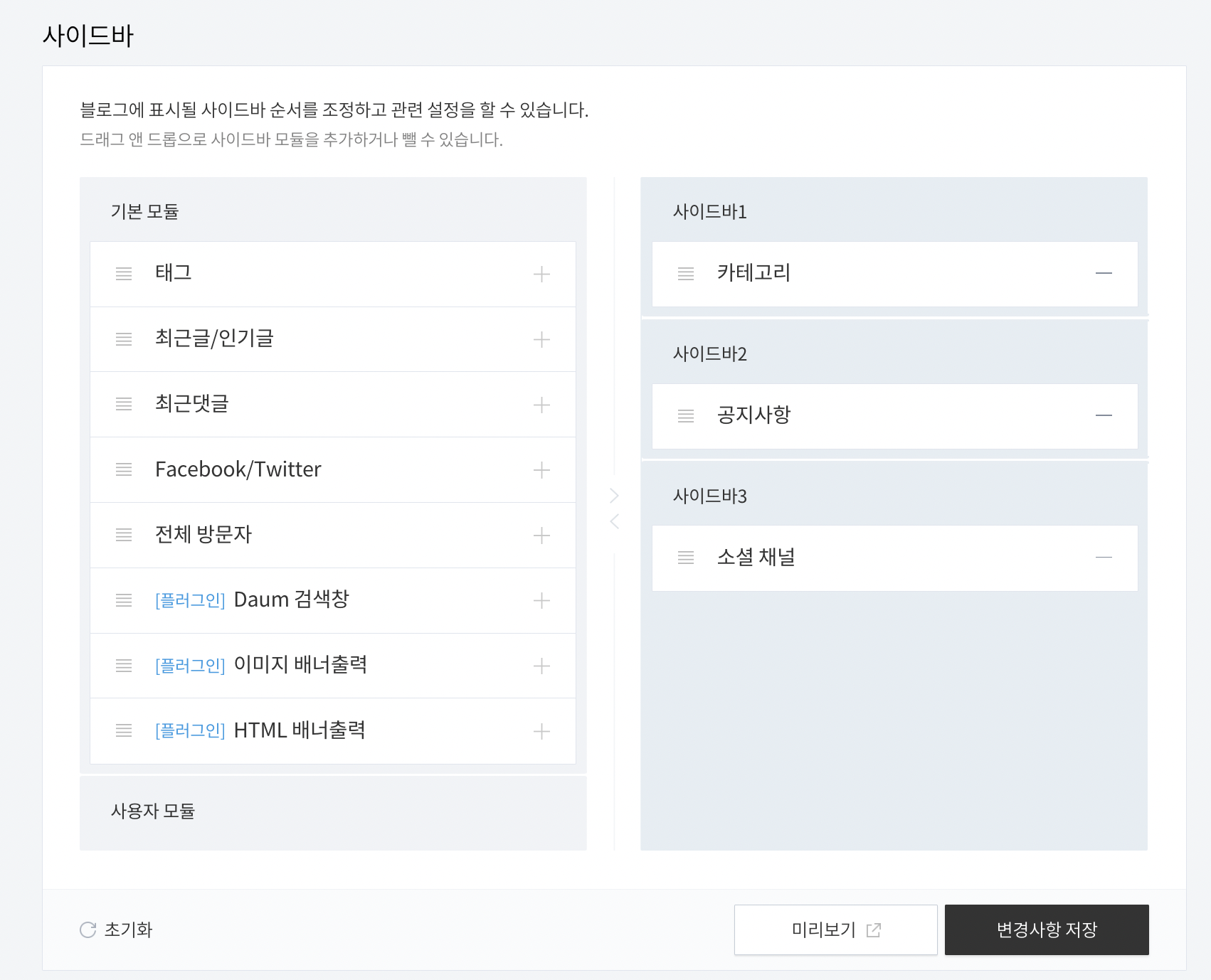 사이드바에서 최근 댓글, 최근글/인기글, 태그를 제거한다.