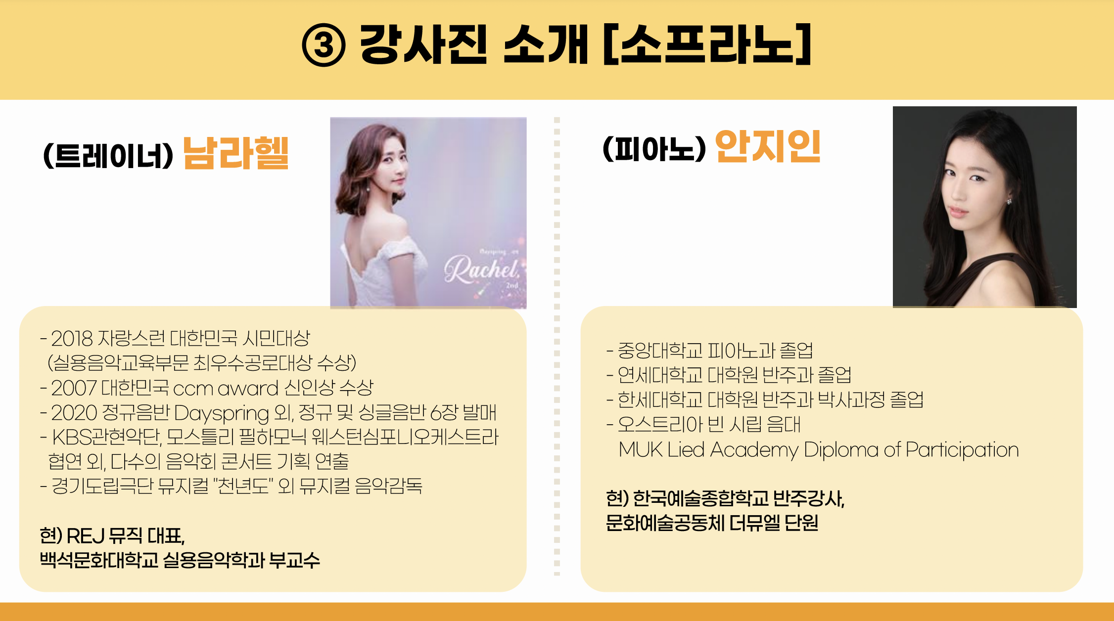 그리고 오늘은 2회차 파트연습! 지난 OT보다는 조금 편안한 마음으로 연습장소를 제 시간에 방문했고, 시간이 조금 지난 뒤 소프라노 파트 지휘자 라헬 선생님과 반주자 안지인 선생님이 들어오셨다.